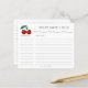 A perfect double sided red cherry recipe card to hand write your favourite recipes. Stylishly match this recipe card to the binder and make the look complete! Please click on this designs collection to view matching items.
