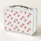 This is a standard metal lunchbox that appears to work just fine. We designed this box ourselves with an uploaded photo and custom text on the front and back. It looks absolutely beautiful except the front of the lunchbox is not centered like it shows in the photo. The print borders don't align with the inset flat part of the box where the preview photo online showed it perfectly centered in there. The back looks nice and centered though.