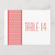 Chic and modern Chevron Border Table Number Postcard featuring a simple chevron pattern border in red and white. This stylish design will set the tone for an elegant wedding. Easy to customise, simply add the appropriate table number(s) in the text field provided. Click "Customise It" to find more personalisation options.
