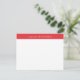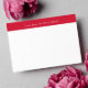 This stylish and plain notecard features a sleek RED coloured bar across the top, adding a refined and modern touch. Within the bar, a customisable line of text allows you to personalise it with your name and a message such as "A Note From," "From the Desk of," or any phrase of your choice. Designed for versatility, the bar colour can be easily changed to match your style or branding. Printed on premium cardstock, this notecard is perfect for professional correspondence, personal messages, or thoughtful notes, offering a polished and personalised way to stay connected.. The perfect bespoke note card for any occasion.