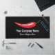 Red chilli pepper company logo template Desk Mat . Simple spicy food icon with modern typography for name and slogan. Black or custom colour background. Professional design for professions related to and jobs in cooking, marketing, products, nature, food, vegetables, restaurant etc.