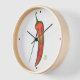 This Red Chilli Pepper Wall Clock features an illustrated ripe-red chilli pepper in a natural round wood frame. It is numberless, but has "12, 3, 6, 9" square dot markers to make telling time easy. An excellent kitchen clock, it would look nice in either a home kitchen, or in a restaurant. Hot, hot, HOT! It's always time for chilli peppers.