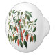 This is a clear image botanical rendering on a round ceramic knob, of a red chilli pepper shrub blooming and fruiting, which you may use as is or add your own background colour or texture.