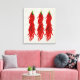 A graphic illustration of red chilli peppers on a wrapped canvas print. ©2015charmainepaulson