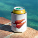 Red Chilli Peppers can coolers are for drinkers, picante food lovers, chilli pepper eaters, cooks and chefs, westerners, Western fans, cowboys, people of Mexican heritage, and people on vacation looking for a hot time. Red Chilli Peppers is Steamy Raimon original art.