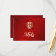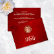 This modern Chinese wedding details card features a gold double happiness symbol on a shimmering ruby red background. With a headline in an elegant handwritten script.