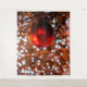 A decorated Christmas tree outdoor, red glass ornament ball with a cap of fresh snow. Brown background, white illumination lights, festive mood. This beautiful tapestry can be used as a Christmas gift, it is good to decorate a home, office wall or a public place for winter holidays season