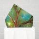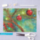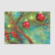 Christmas themed tissue paper design featuring red Christmas baubles and glowing lights on a tree branches, painted in Impressionist style.