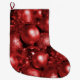 A very festive red Christmas stocking featuring a pattern of metallic red Christmas tree decorations, ornaments and baubles to add some glitz and sparkle to your Christmas gifts this holiday season.