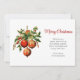 A flat Christmas card with a vintage style illustration. 3 red Christmas baubles surrounded by green holly and berries. Retro cool.