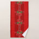 Beautiful Christmas red Ribbon Bow with bells, Pine and Holly Berries and leaves, are on this red Christmas Bath Towel Set.