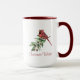 A beautiful classic Christmas print. Design features a watercolour red Cardinal in the center sitting on a leafy branch. The words "Christmas Wishes" are in a dark red script underneath. The message can be customized.