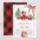Red Christmas Coquette Bear Girl Baby Shower Invitation