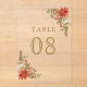 Amaze your guests with this elegant table number card featuring beautiful red poinsettia flowers and rustic pine leaves.