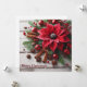 Red Christmas flower on traditional white wood Holiday Card