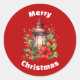 Red Christmas Lantern Poinsettia and Pine Classic Round Sticker