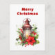 Red Christmas Lantern Poinsettia and Pine Holiday Postcard