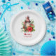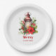 Red Christmas Lantern Poinsettia and Pine Paper Plate
