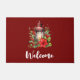 Red Christmas Lantern Poinsettia and Pine Welcome Doormat