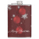 Enjoy your favourite alcoholic beverages this holiday season with a Red Christmas Ornaments Vinyl Wrapped Flask. Flask design features a trio of hanging Christmas ornaments with falling snowflakes and a dark red background. Additional gift and holiday items available with this design as well.