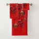 Beautiful      gold and red Holiday Ornaments, with curled red Ribbons,    are  on this  Red  Christmas   Bath Towel Set.