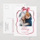 Red Christmas Photo Hand-Drawn Bow Ribbon Holiday Postcard