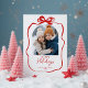 Cute Red Christmas Photo Hand-Drawn Bow Ribbon Holiday Card
