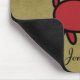 A personalised mouse pad with a red Christmas reindeer illustration. Festive and cute. The background is a digital image of brown kraft paper, not actual kraft paper.