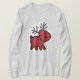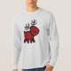 A shirt with a red Christmas reindeer illustration. Festive and cute.