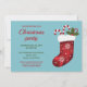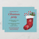 Red Christmas Stocking On Blue - Christmas Party Invitation