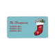 Red Christmas Stocking On Blue With Custom Text Label