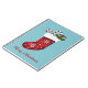 Red Christmas Stocking On Blue With Custom Text Notebook