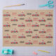 A cute illustration of a red Christmas tractor truck wearing a Santa hat and decorated in Christmas lights towing a wagon filled with Christmas gifts on a kraft brown paper look background. Perfect for boys and girls who love tractors, trucks, heavy machinery, farming or just love playing with toy trucks. An ideal Christmas tissue paper for tractor truck enthusiasts big or small, girls or boys. Customise the name and make it your own.