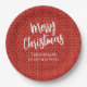 This design features a red Christmas winter traditional paper plate, a simple elegant classy template, merry Christmas typography, classy stylish calligraphy script, holiday entertaining, Christmas party supplies, a classic traditional classy snowflakes, a classic winter pattern, custom customised personalised, a Christmas holiday party supplies