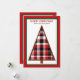 This fun flat invitation features a red, white and black plaid Christmas tree as the focal point on a white background edged in green and red. The words, "Merry Christmas from our new place" appear along the top. On the back side of the flat card, is another cute plaid Christmas tree. Below the tree is a fun moving Christmas verse along with your new address and your names. Copyright Kathy Henis