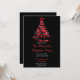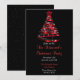 A red christmas tree on a black background. The back of the invite is black with snow pattern