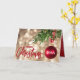 A beautiful red Christmas tree ornament against gold blurred lights features a greeting on the front, your favorite photo and your personalization and names on the inside. MORE styles and designs in our store.