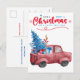 Red Christmas Truck Illustration Holiday Greetings Postcard