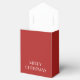 Red Christmas tent favour box with a white reindeer head print, MERRY CHRISTMAS on the front side and and personalised gift message on the back. Matching Christmas greeting card, stamps, address labels and Christmas gifts available at the ScriptoGraphic Design Gift Store