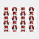 This red Christmas wrapping paper set features three separate red patterns for your Christmas gift wrapping: a modern pattern of white Christmas trees with the text 'Be Merry' scattered all around them; the second sheet has a cute and whimsical pattern of little snowmen dressed in red vests and top hats, and the third sheet has a very elegant, deluxe Christmas pattern of golden Christmas snowflakes (or stars) on a vivid, red background.