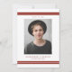 Announce your graduation to family and friends with this customisable class of 2023 photo graduation announcement card. It features classic typography and double stripes accents. Personalise this red and white graduation announcement by adding a photo, name, school and other details. This simple photo graduation announcement is available in other cardstock.