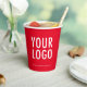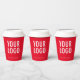 Easily personalize our 8 ounce paper cups with your business logo and custom text. These FDA approved paper cups are for cold and hot drinks. The dimensions for the 8 oz cups are 3.75 inch x 3 inch. Available without or with lids. Also available in 12 oz size. Designed in red and other colors (all colors are customizable). Sold in sets of 8. Low minimum order quantity and no setup fee. Printed in the U.S.A.