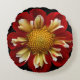 Accent your home with this round throw pillow that features the photo image of a red Collarette Dahlia flower with white, inner petals on a black background. A lovely, floral design! Select your pillow fabric style.