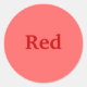 The word Red is printed in red on a light red background, on stickers.