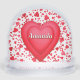 Personalise this snow globe with a name or text on this fun original design featuring a sprinkle of confetti hearts in shades of red.