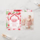 Red Coquette Bow Cherry First Birthday Party Photo Invitation