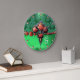 RED CORAL ROSES, AQUA BLUE GREEN DAMASK MONOGRAM LARGE CLOCK
