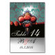 RED CORAL ROSES,BLACK BLUE WHITE DAMASK MONOGRAM TABLE NUMBER