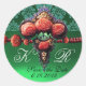 RED CORAL ROSES,BLUE EMERALD GREEN DAMASK MONOGRAM CLASSIC ROUND STICKER