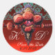 RED CORAL ROSES,RUBY DAMASK MONOGRAM CLASSIC ROUND STICKER